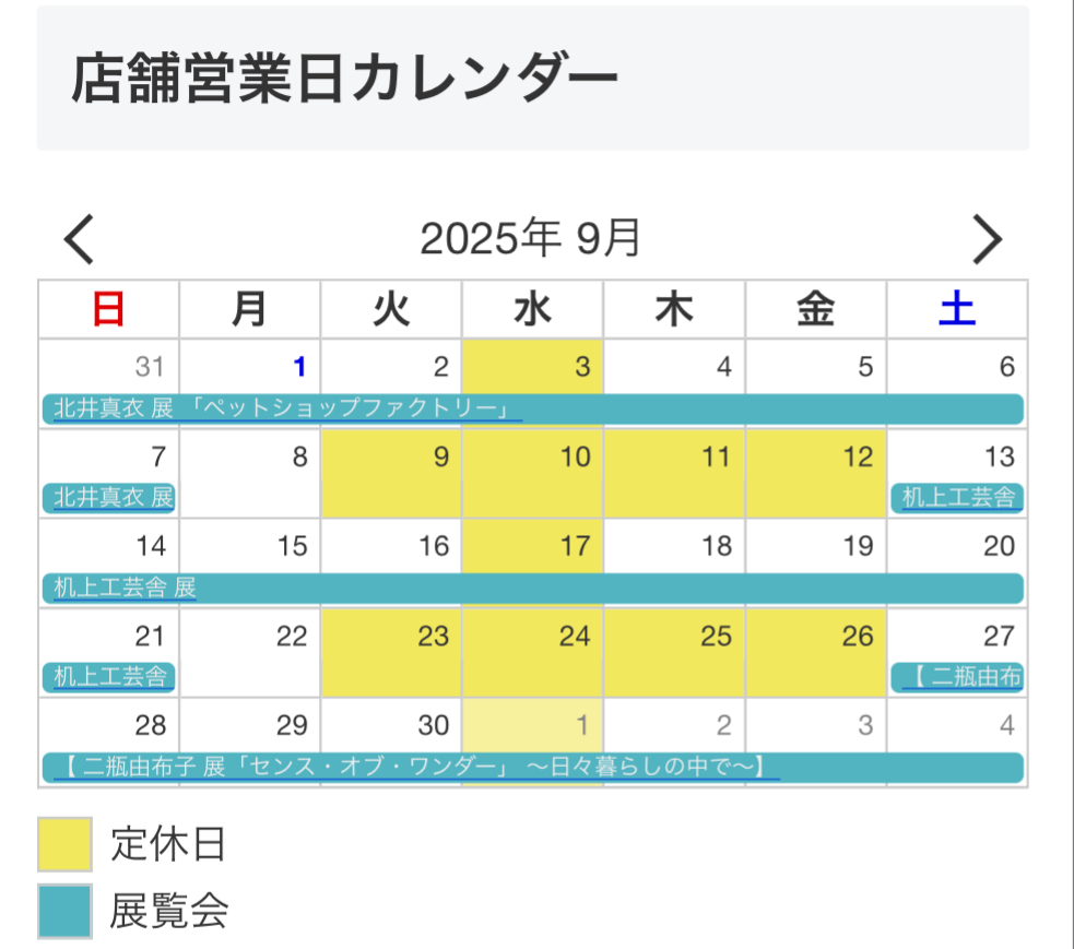 休廊日 9月3日