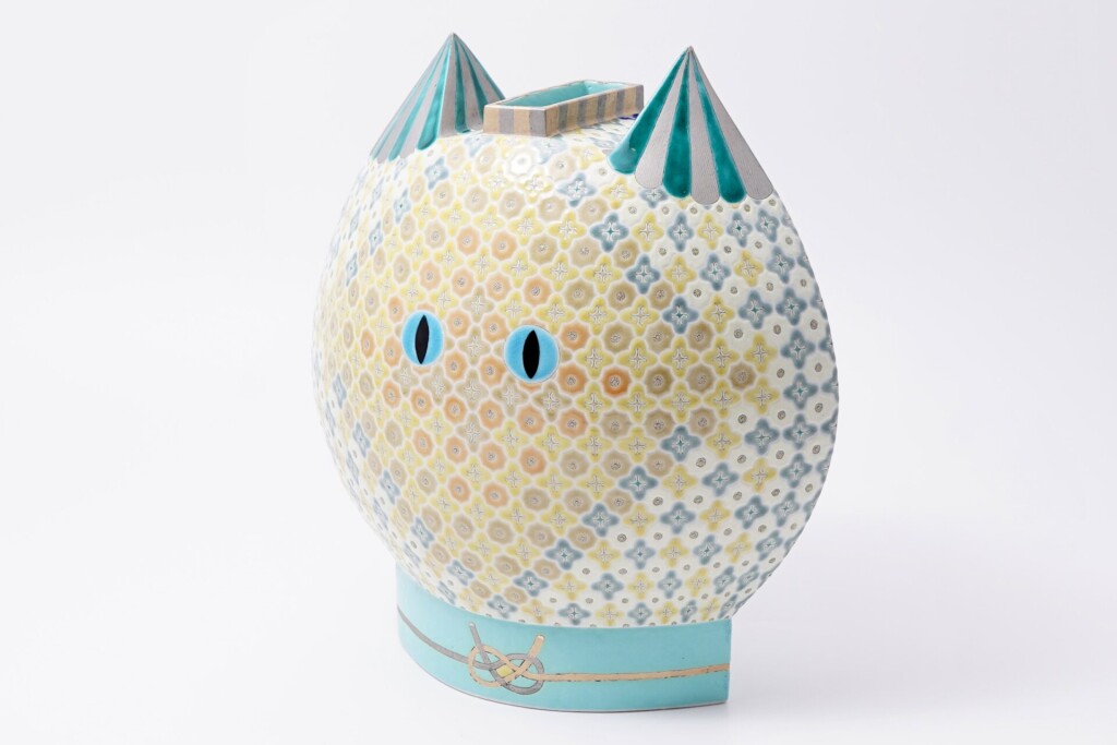 梅田かん子さんが制作されているのは色絵磁器です。植物や動物を描いた作品が多く、愛嬌たっぷりの面白い造形が可愛らしいですね。そして和にもエキゾチックにも感じられる文様が目を惹きます。