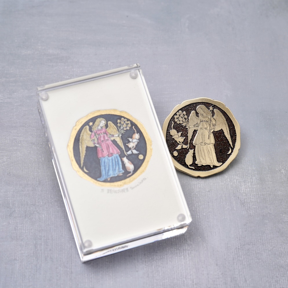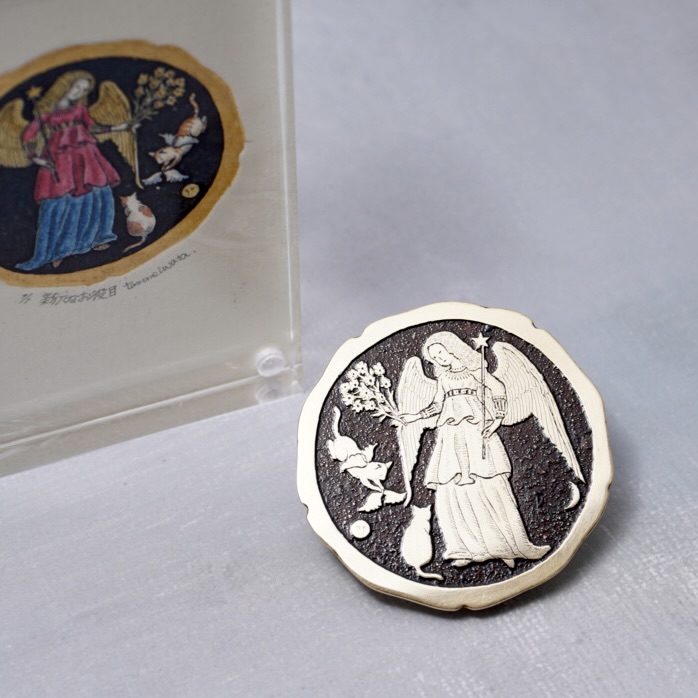原版を漆で仕上げてブローチにするので、版画のエディションナンバーは1/1。