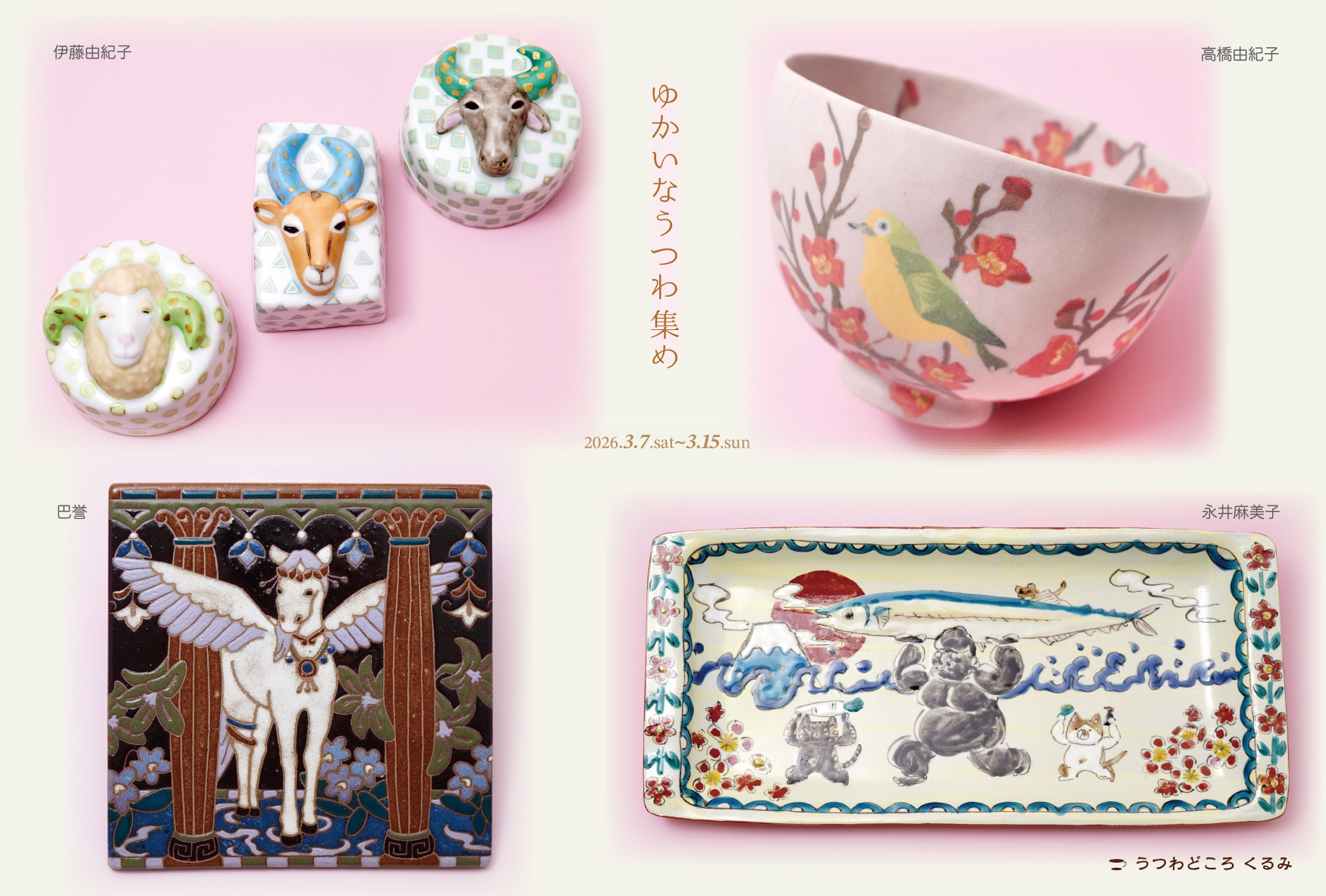 気持ちがわくわく楽しくなるような、ゆかいなうつわを集めます。