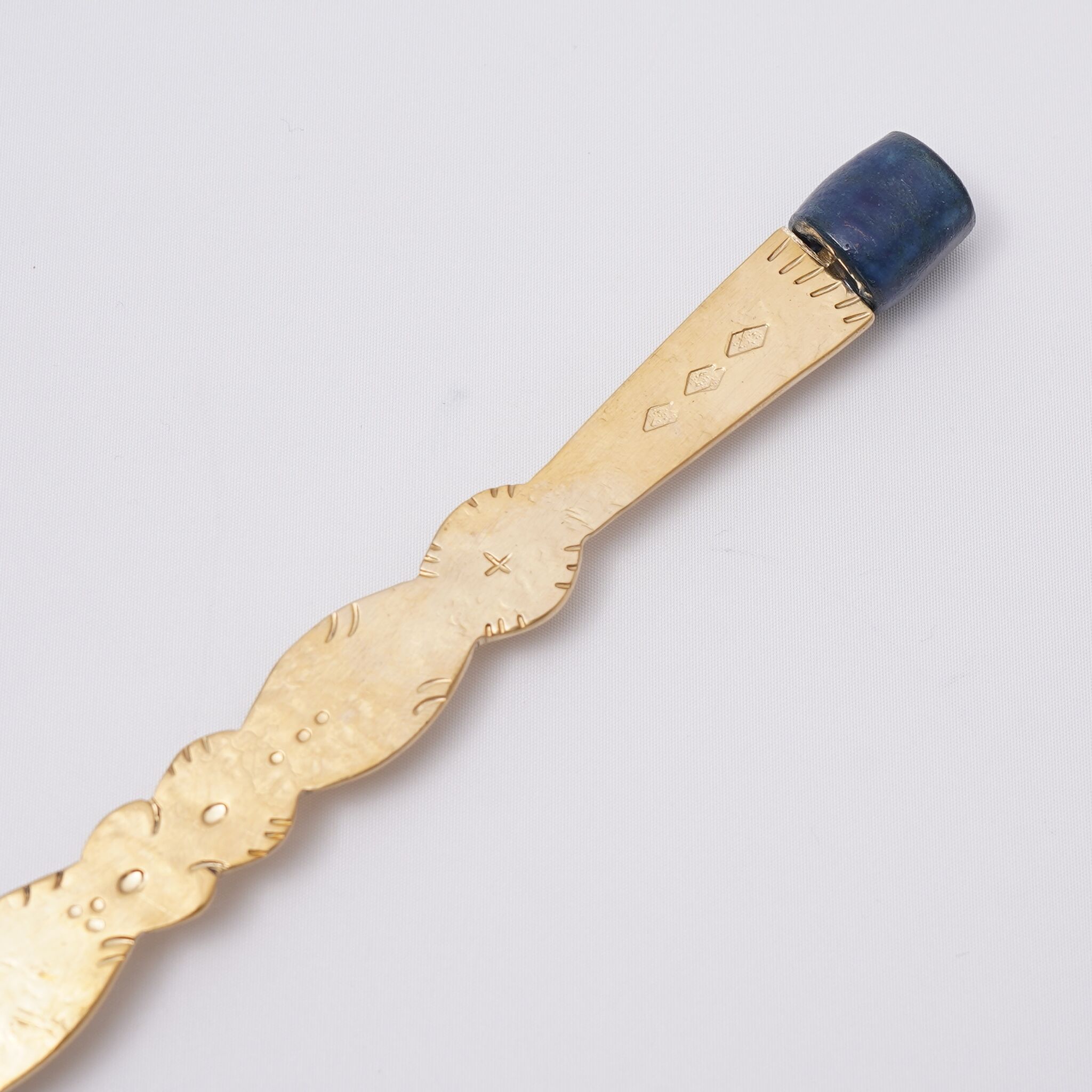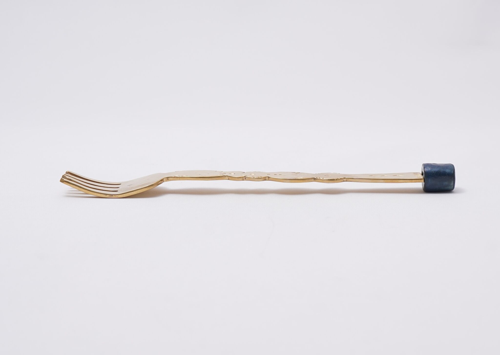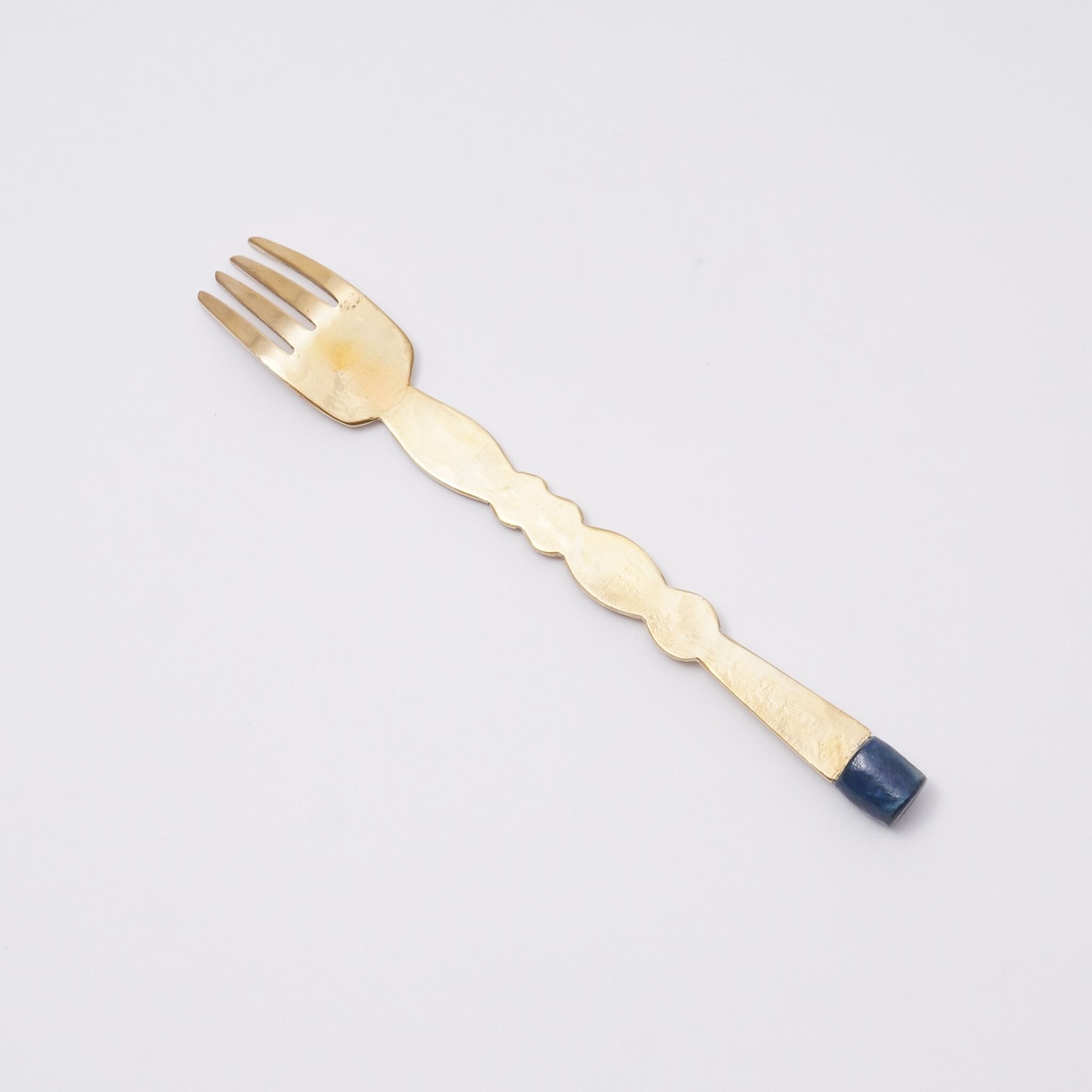 絵本から飛び出してきたような、とても可愛らしい真鍮のカトラリーです。中村かおりさんとのコラボ作品で、色付きの磁器の部分が中村かおりさん作です。